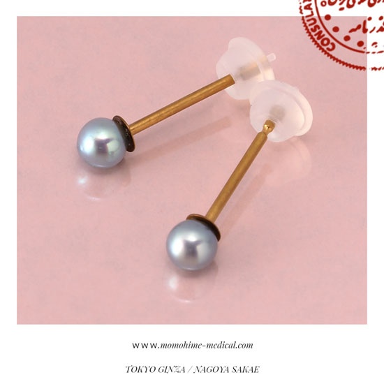 (ピアスの穴あけ 耳たぶピアス ブルーパールチタンピアス 局所麻酔とニードルによる)